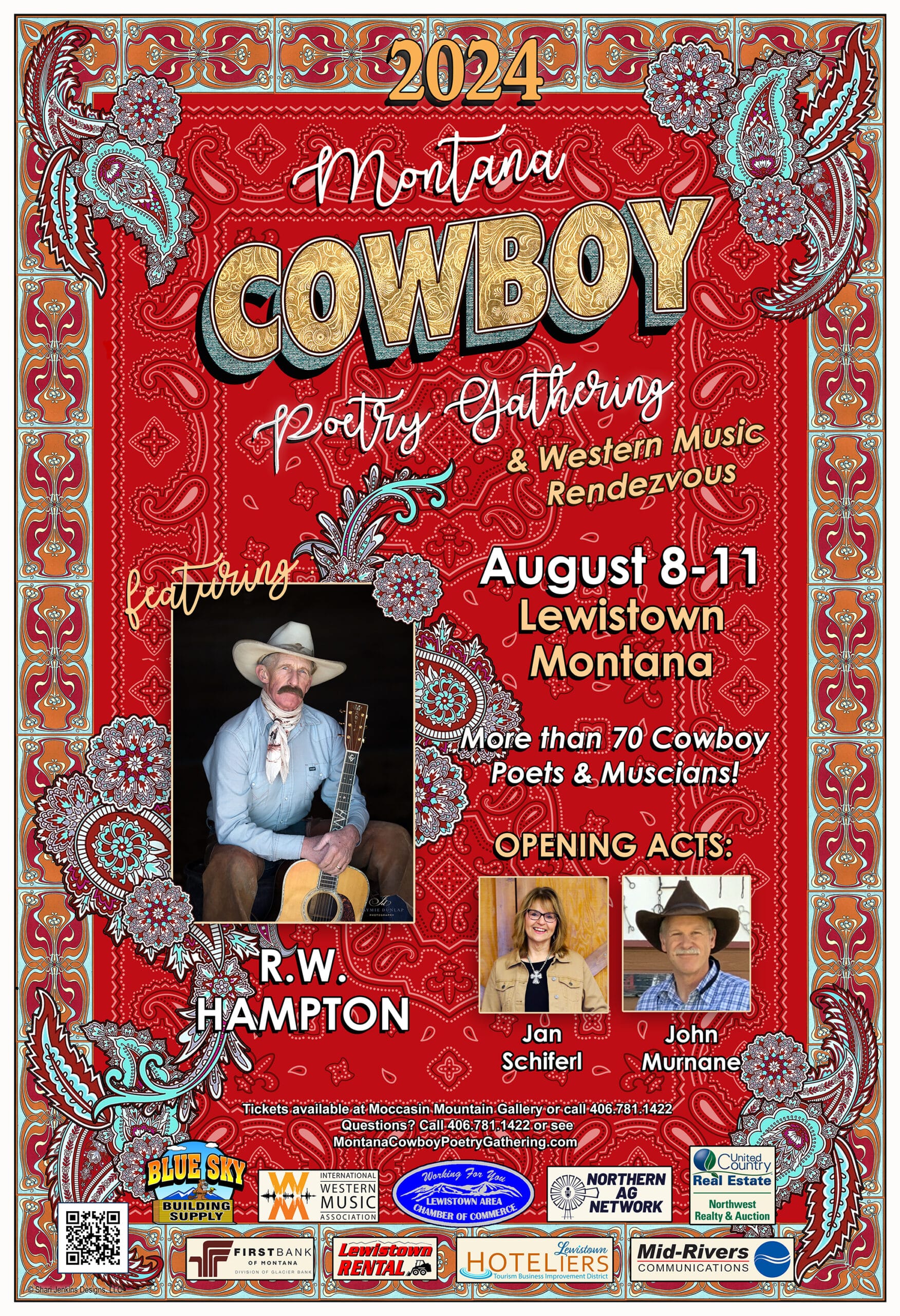 Montana Cowboy Poetry Gathering August 8 -11 in Lewistown! Cowboy poets, western musicians, and artists from all over the United States and Canada will gather to celebrate our cowboy heritage. Montana Cowboy Poetry Gathering, is a four day event packed with everything western. Hourly poetry, music sessions, a Jam’n dance, FREE Western Art and Gear show and Saturday night R. W. HAMPTON takes the Grand Stage. For schedules, tickets and info visit montanacowboypoetrygathering.com or call 781 –1422.
