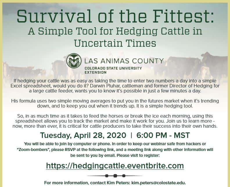 Cattle Futures Hedging Tools Webinar + Add to Google Calendar + iCal / Outlook export The event is finished. Date Apr 28 2020 Expired! Time 6:00 pm - 8:00 pm Cost $ Category Event Share this event