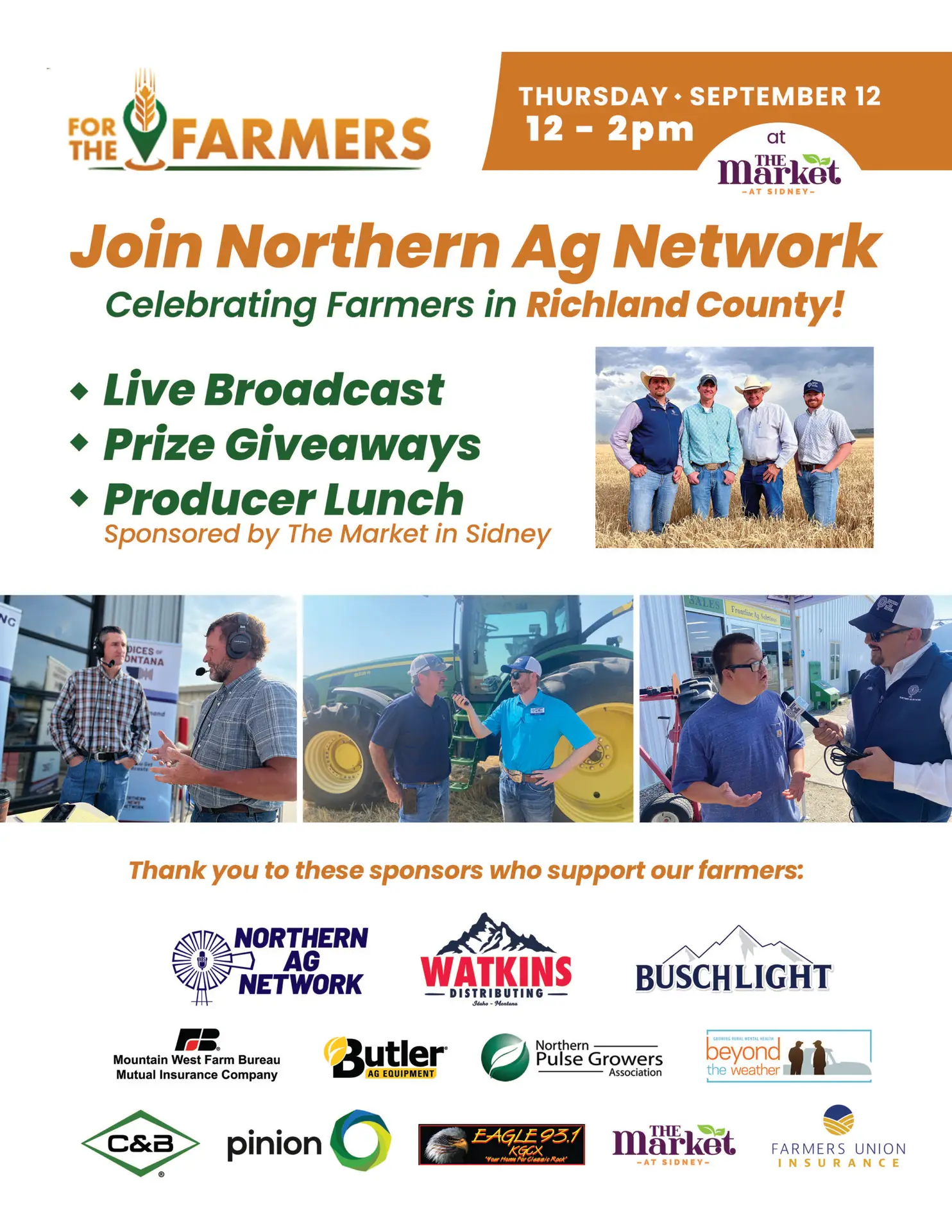 For the Farmers – Sidney, MT For the Farmers at the Market in Sidney 12 – 2 PM. Sidney MT + Add to Google Calendar + iCal / Outlook export The event is finished. Date Sep 12 2024 Expired! Time All Day Share this event