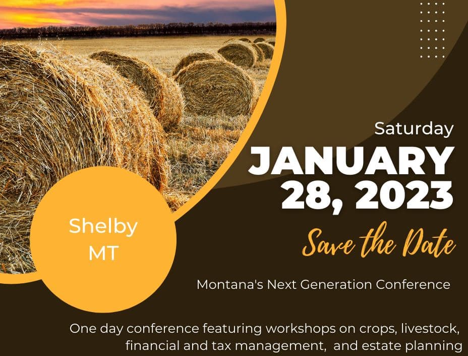 Registration is now open for the 2023 Montana’s Next Generation Conference, which offers 36 workshops for both beginning and advanced producers seeking continuing education! The conference will be hosted by Montana State University Extension and the Native American Community Development Corporation Financial Services at Shelby High School in Shelby, Montana, on Saturday, Jan. 28. Participants will be able to choose from six different presentations to attend during the conference’s sessions. Topics include recordkeeping, market outlooks, marketing, crop and livestock production, succession planning, and business.
