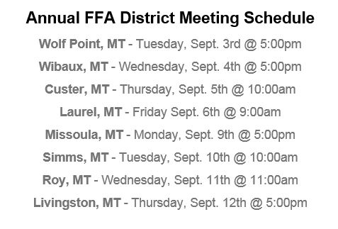 At the same time, the Montana FFA Foundation will be hosting meetings in conjunction with those seminars to provide an update on the foundation’s current projects that impact FFA members and various ways to get involved in your local FFA Alumni & Supporters chapters.