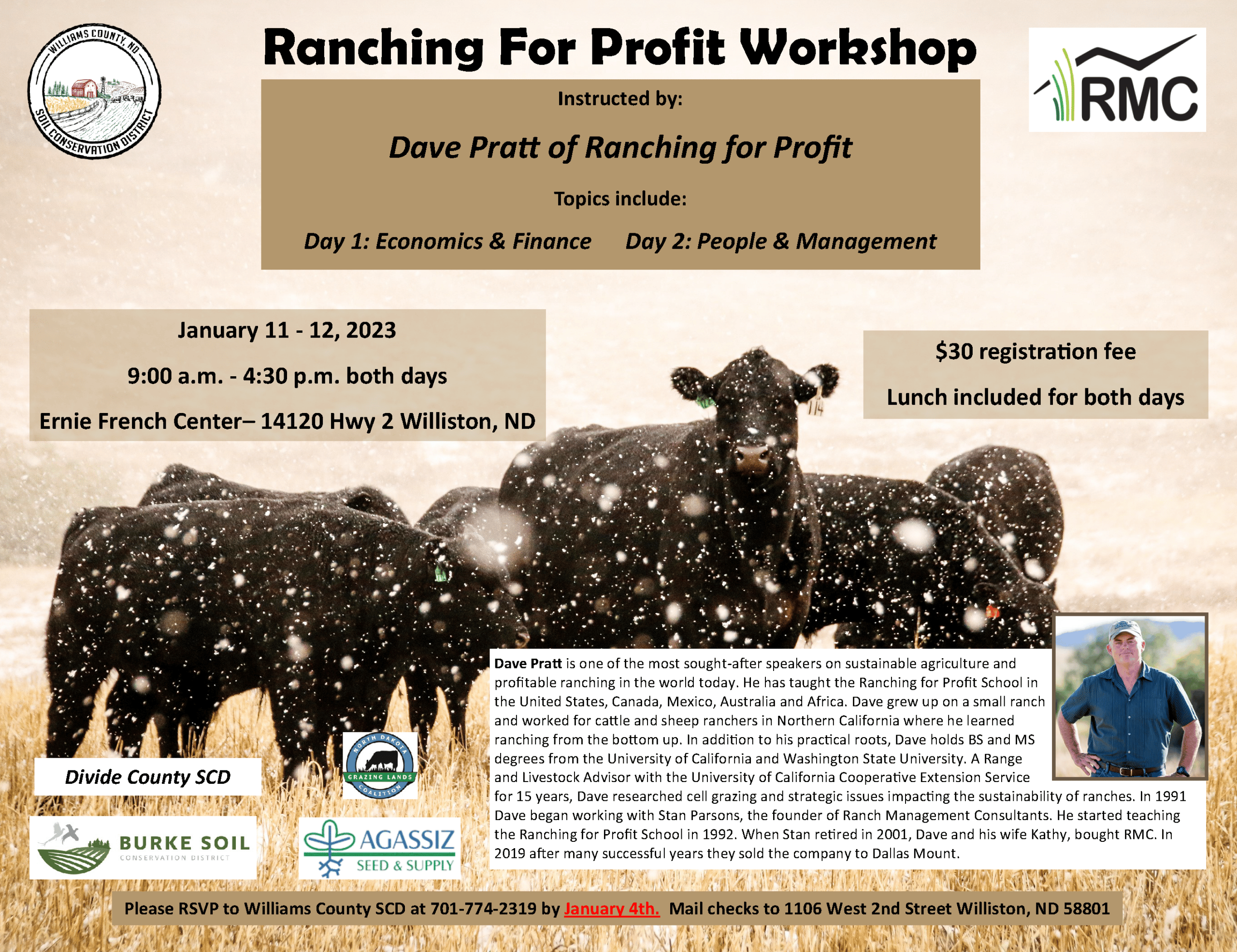 Ranching for Profit Workshop – Williston, ND + Add to Google Calendar + iCal / Outlook export The event is finished. Date Jan 11 - 12 2023 Expired! Time Central Time 9:00 am - 4:30 pm Category Event Share this event