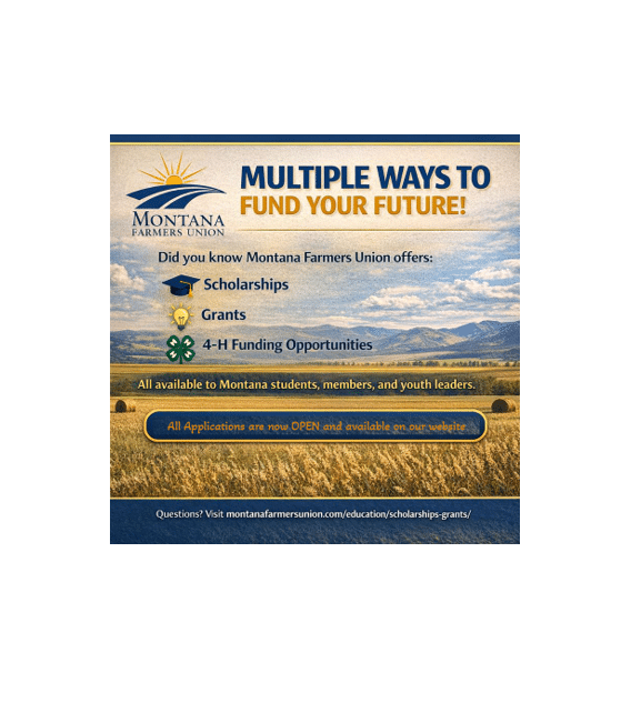 The scholarships are one of the ways MFU supports family farmers and ranchers through education, with the grassroots organization awarding $15,000 in scholarships in 2025 alone. Scholarships available this year include the Bud Daniels Memorial Scholarship ($1,000), the John Korsbeck Memorial Scholarship ($1,000), and the Cascade County-wide Farmers Union Local ($1,000) Chouteau County Farmers Union Local ($500), Montana Farmers Union Scholarships ($1,000), and Flathead County-wide Farmers Union Local ($500) scholarships.