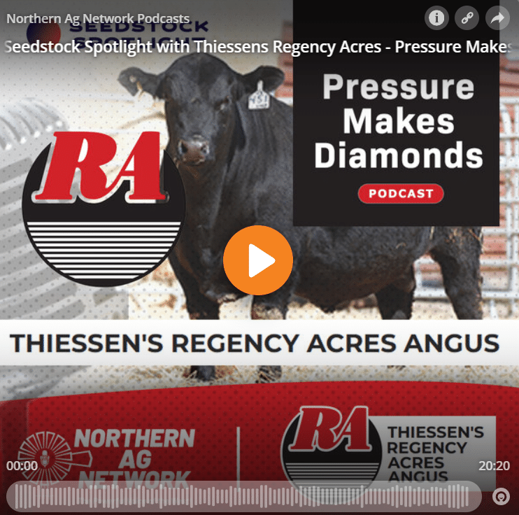 “Pressure makes diamonds.” And in the short grass country of Eastern Montana, there’s no shortage of pressure. In the newest Seedstock Spotlight Podcast Russ and Tyler Thiessen of Regency Acres Angus share how tough country and real-world conditions shape the kind of cattle they raise…functional, durable, and built to last!